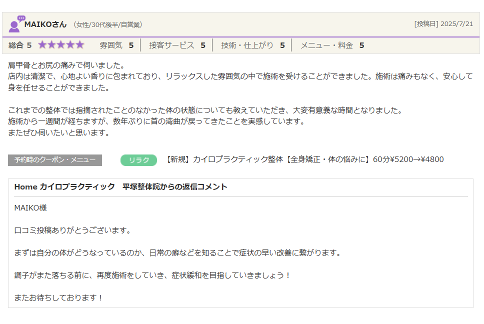 投稿者:MAIKOさん(女性/30代後半/自営業) 2025/7/21